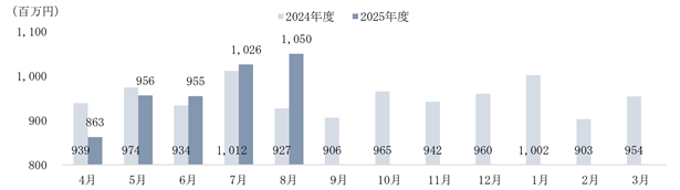 | 2025年度 | 863 | 956 | 955 | 1,026 | 1,050 | - | - | - | - | - | - | - |