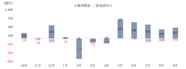 3. 運用残高の変動要因としては、運用益が377億円となり、71億円の資金純流出がありました。