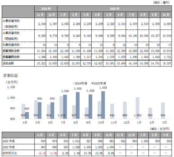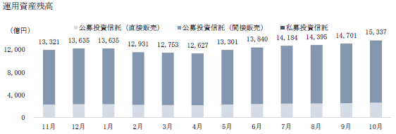 1. 前月末の当社グループにおける投資信託委託業務及び投資顧問業務の運用残高は前々月末比で636億円増加し、1兆5,337億円となりました。投資信託委託業務及び投資顧問業務における月末残高としては過去最高を更新しました。