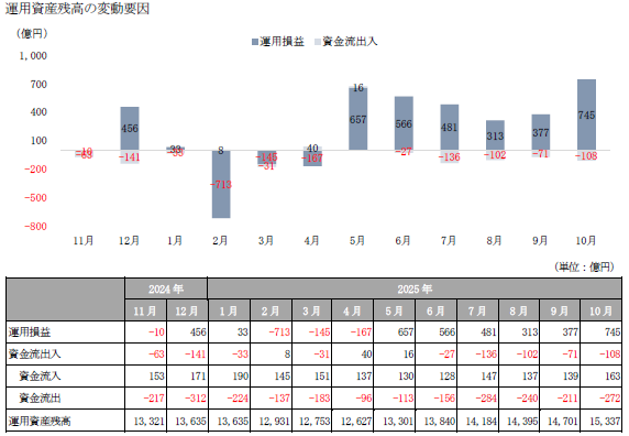 3. 運用残高の変動要因としては、運用益が745億円となり、108億円の資金純流出がありました。