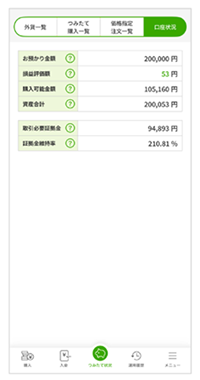 さらに、口座状況画面には「?」アイコンを設置し、タップするだけで各項目の説明が確認できるようになりました。初めてご利用いただく方でも、その場で意味を確認できるため安心してご利用いただけます。