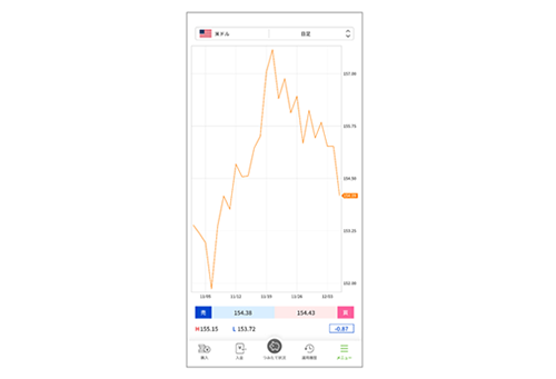 さらに、直近の値動きを確認できるチャート機能も新たに導入し、為替動向を把握しやすくなりました。